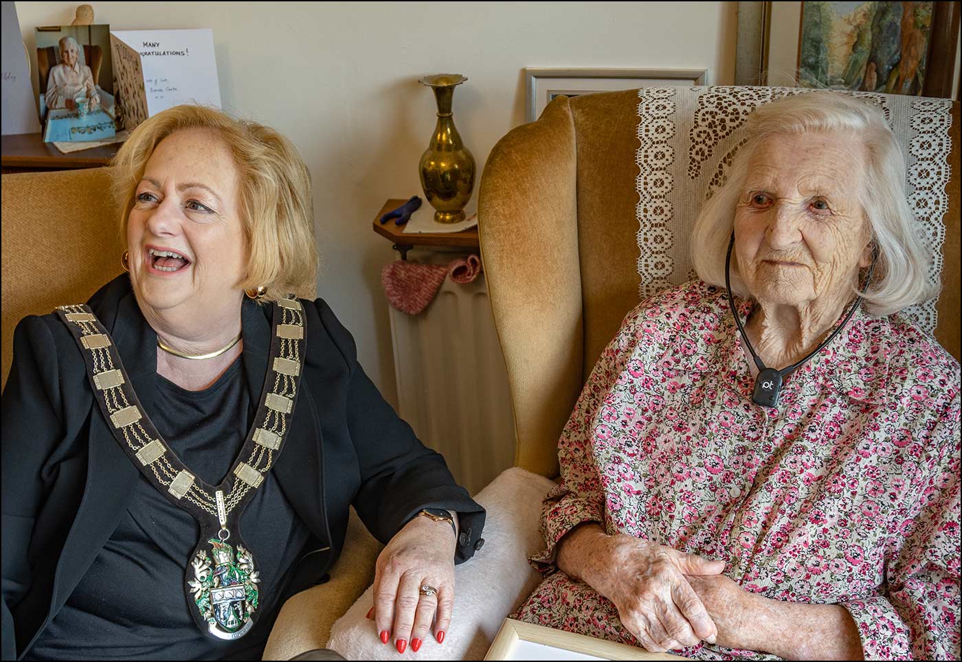 The photo above includes her sister, Agnes, with whom she shares a house in the village. Agnes has seen this all before: she was 100 just over a year ago!